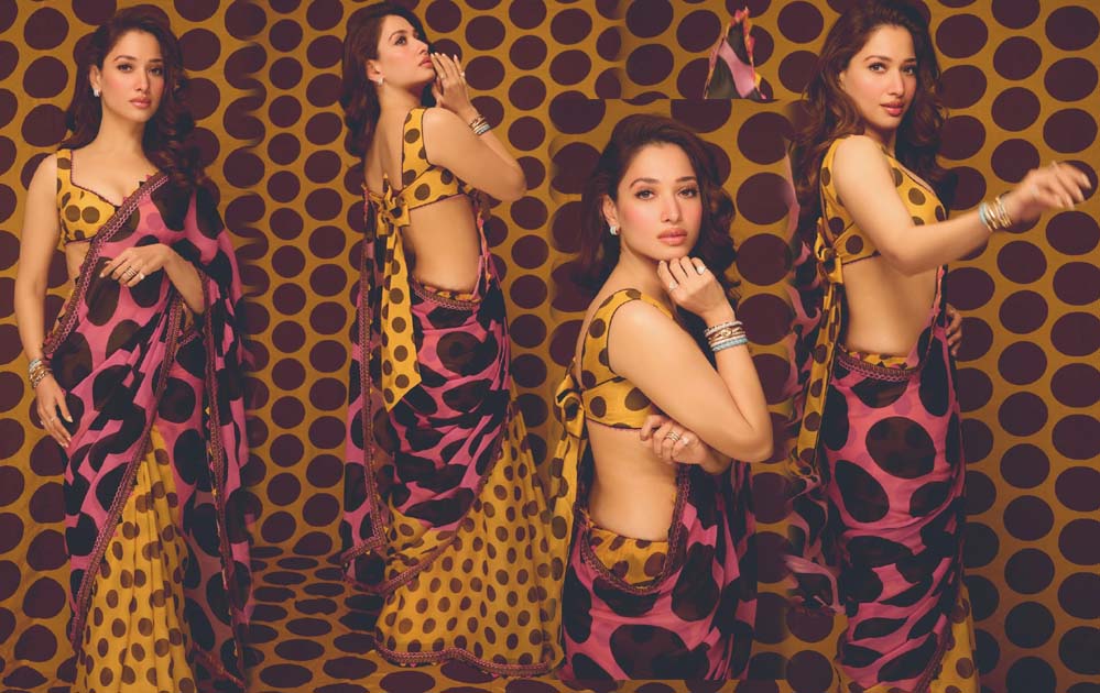 पोल्का डॉट साड़ी में तमन्ना ने दिखाया कमाल, ब्लाउज ने 70 के दशक के ग्लैमर को नया रूप दिया