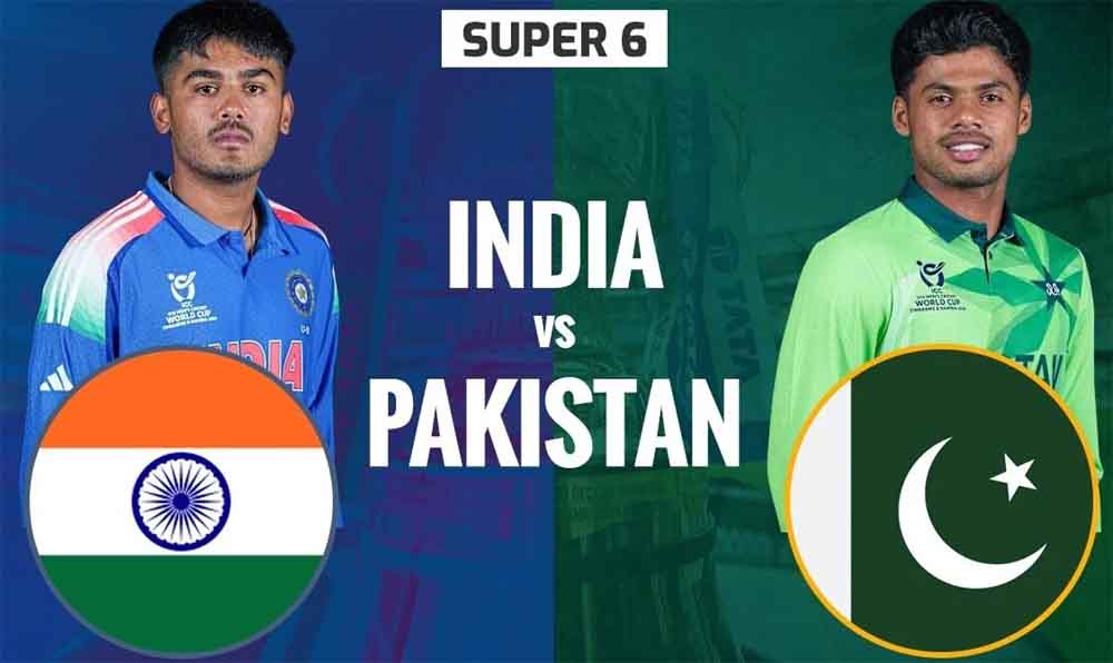 इंडिया वर्सेस पाकिस्तान अंडर-19 वर्ल्ड कप 2026 सुपर-6 का 12वां मैच क्वींस स्पोर्ट्स क्लब में खेला जा रहा है। पाकिस्तान ने टॉस जीतकर पहले फील्डिंग करने का फैसला किया है। वैभव सूर्यवंसी और आरोन जॉर्ज ने पहले विकेट के लिए 47 रन जोड़े। टीम इंडिया को पहला झटका वैभव सूर्यवंशी के रूप में लगा जो 30 रन बनाकर आउट हुए। कप्तान आयुष म्हात्रे खाता भी नहीं खोल पाए। अब आरोन जॉर्ज का साथ देने वेदांत त्रिवेदी आए हैं। बता दें, दोनों टीमों में एक-एक बदलाव हुआ है। सेमीफाइनल में जगह बनाने का यह दोनों टीमों के पास आखिरी मौका है। भारत के पास पाकिस्तान से एशिया कप फाइनल में मिली हार का हिसाब चुकता करने का सुनहरा मौका है। भारतीय टीम ने जारी टूर्नामेंट में अपने सभी मुकाबले जीते हैं। वहीं पाकिस्तान ने इंग्लैंड के खिलाफ अपना मुकाबला गंवाया था। विश्व कप में भारत का प्रदर्शन बेहतरीन रहा है। टीम ने अमेरिका पर 6 विकेट से जीत दर्ज कर अपने अभियान की शुरुआत की थी और फिर बांग्लादेश, न्यूजीलैंड की टीमों को शिकस्त दी। अपने पहले सुपर सिक्स मैच में मेजबान जिम्बाब्वे को 204 रनों से हराया था।
