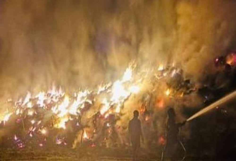 संगरूर जिले के चन्नो गांव में शनिवार और रविवार की मध्यरात्रि को पराली के डंप (stubble dump) में भीषण आग लग गई। इस हादसे में करीब 120 ट्रॉलियों की पराली जलकर राख हो गई।