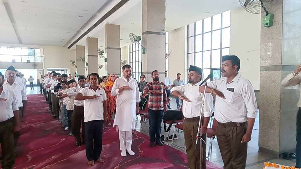 राष्ट्रीय स्वयंसेवक संघ ने राजपुरा के बहावलपुर भवन में अपना 100वां स्थापना दिवस मनाया। समारोह की अध्यक्षता बहन महा शारदा भारती ने की, जबकि मुख्य अतिथि सामाजिक कार्यकर्ता प्रवीण जी और मुख्य वक्ता प्रांत गौ सेवा प्रमुख चंद्रकांत रहे। कार्यक्रम की शुरुआत विधिवत शस्त्र पूजन से हुई।मुख्य वक्ता चंद्रकांत ने कहा कि भारत का समग्र विकास तभी संभव है जब हर नागरिक ‘स्व’ बोध अपनाए, पर्यावरण की रक्षा करे, नागरिक कर्तव्यों का पालन करे, समाज में समरसता लाए और आदर्श परिवार व्यवस्था को मजबूत बनाए। उन्होंने कहा कि राष्ट्र निर्माण का आधार चरित्र निर्माण है-शिक्षा या ज्ञान तभी सार्थक है जब उसमें नैतिकता और देशभक्ति के मूल्य निहित हों।