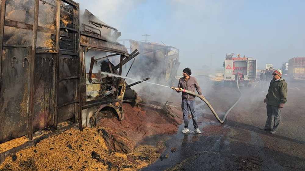 NH-152D accident: चरखी दादरी में एनएच-152डी पर गत देर रात गांव कमोद के समीप हुए भीषण सड़क हादसे में दो ट्राला आपस में टकराने के बाद आग की चपेट में आ गए। हादसा इतना भयंकर था कि एक ट्राला के चालक और परिचालक जिंदा जल गए, जबकि दूसरे ट्राला का चालक गंभीर रूप से घायल हो गया।