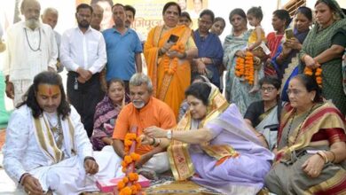 मुख्यमंत्री डॉ. यादव ने अखिल भारतीय अखाड़ा परिषद अध्यक्ष रविंद्र पूरी जी महाराज और साधु संतो पर पुष्प-वर्षा कर खेली होली