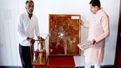 सुमित्रा महाजन द्वारा सागर लखार का स्वागत किया