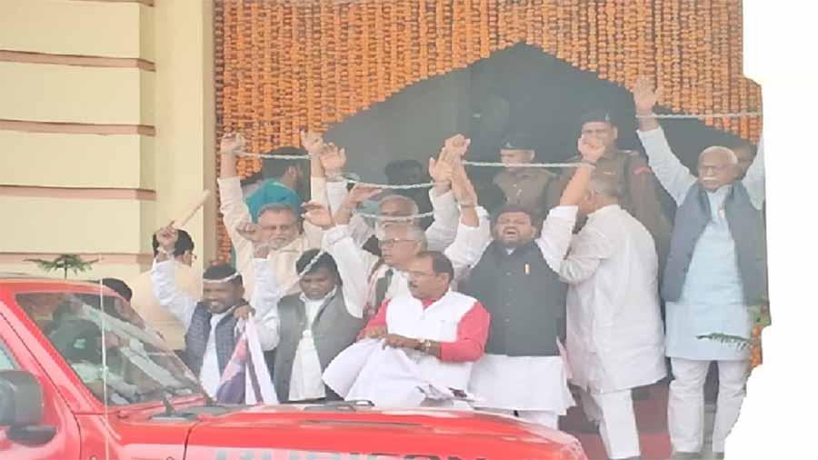 बजट सत्र के पहले दिन वाम विधायकों ने हाथ में हथकड़ी पहनकर किया प्रदर्शन