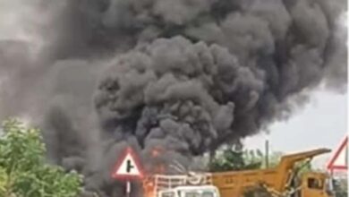 रायपुर में बड़ा हादसा: रोड मार्किंग मशीन में ब्लास्ट, आसमान में उठा धुएं का गुबार